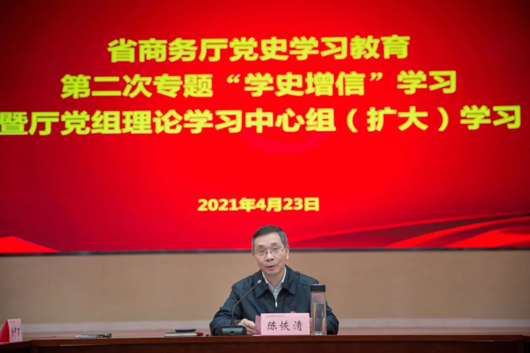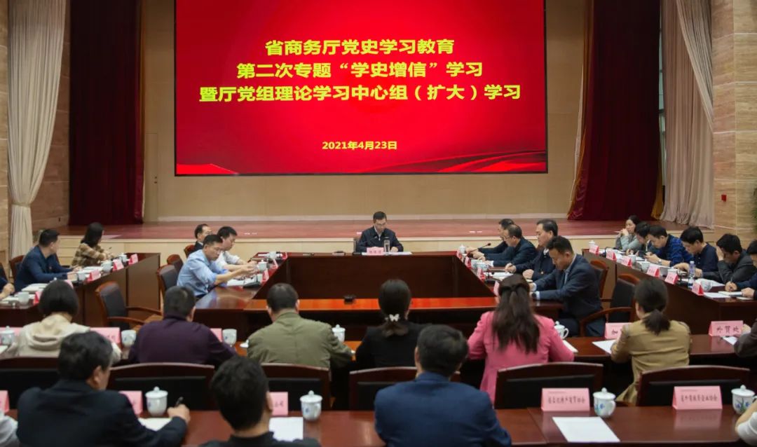 2021年4月23日,湖南省商务厅召开了“学史增信”专题学习活动暨厅党组理论学习中心组(扩大)学习。